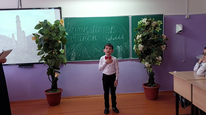 Ассаламу 1алайкум! 📚19 апреляхь вайн школяхь д1абаьхьира байташ ешаран къовсам "Ненан мотт - ага аганан илли" 2-10- г1ий уласашкахь. Кечам бинарг хьехархо: Байтулаева Асма Самрудиновна,Сулейманова Субар Сайдхасановна.