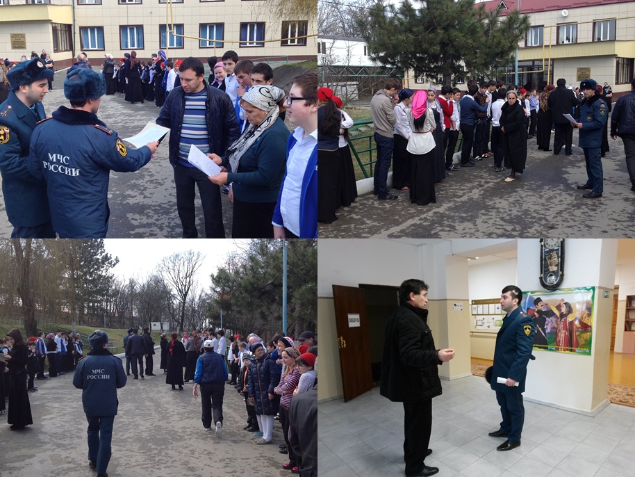 04.03.201504.03.2015 г. в присутствии представителей отделения надзорной деятельности по Октябрьскому району г.Грозного, офицеров внутренней службы: ст. лейтенанта Хаджиева А.Ш. и ст. лейтенанта Халаева И.И. проведена практическая тренировка по эвакуации учащихся, преподавателей и обслуживающего персонала из учебного корпуса ГБОУ «С(к)ОШИСС».