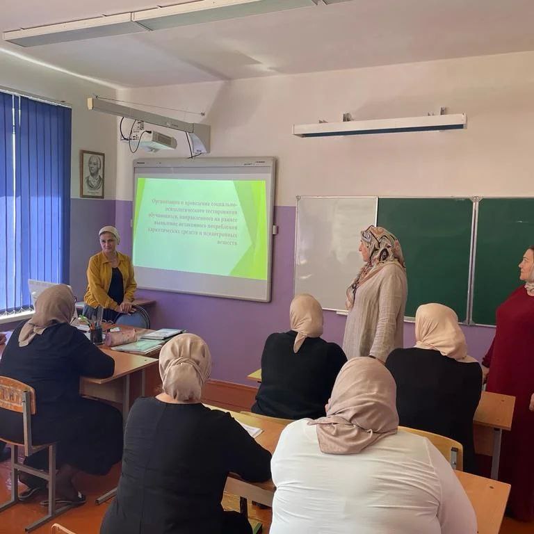 07.10.2022Ответственные за организацию и проведение СПТ обучающихся, провели обучающий семинар с педагогами нашего интерната, по вопросам организации работы по профилактике незаконного потребления ПАВ, суицидального поведения несовершеннолетних с разъяснением факторов риска, поведенческих проявлений, алгоритма собственных действий.