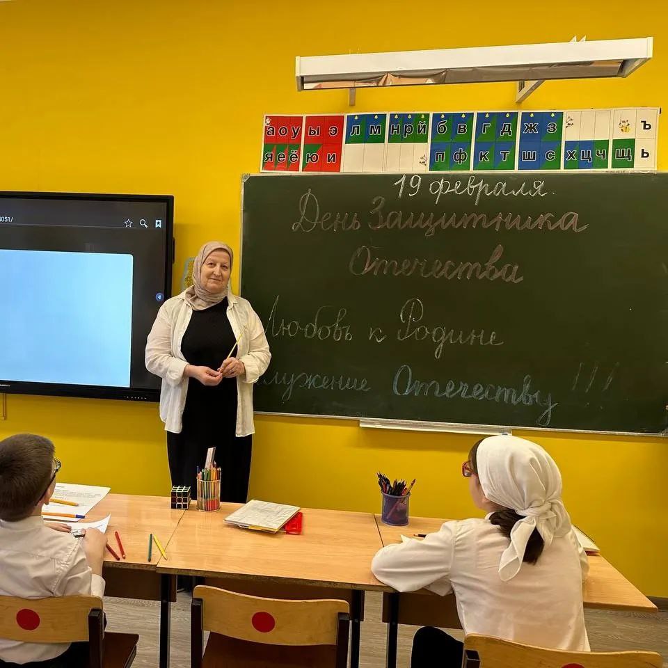 📚19 февраля учебная неделя в нашей школе началась с традиционной линейки поднятия флага и гимнов РФ и ЧР.