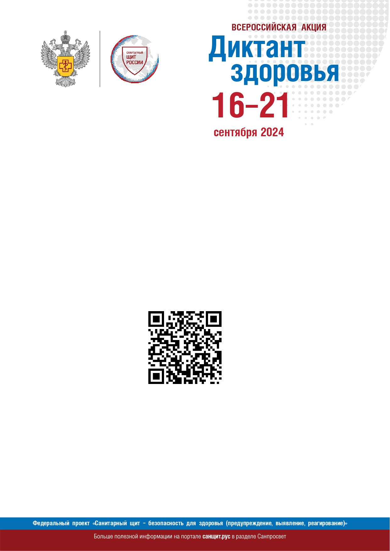 Цель мероприятия - популяризация основ санитарно-гигиеническойграмотности, обучение школьников правилам и нормам здорового образажизни. Акция реализуется в период с 16 сентября по 21 сентября 2024 года. В Акции могут принять участие представители всех социально-демографических групп в возрасте от 13 лет и старше.