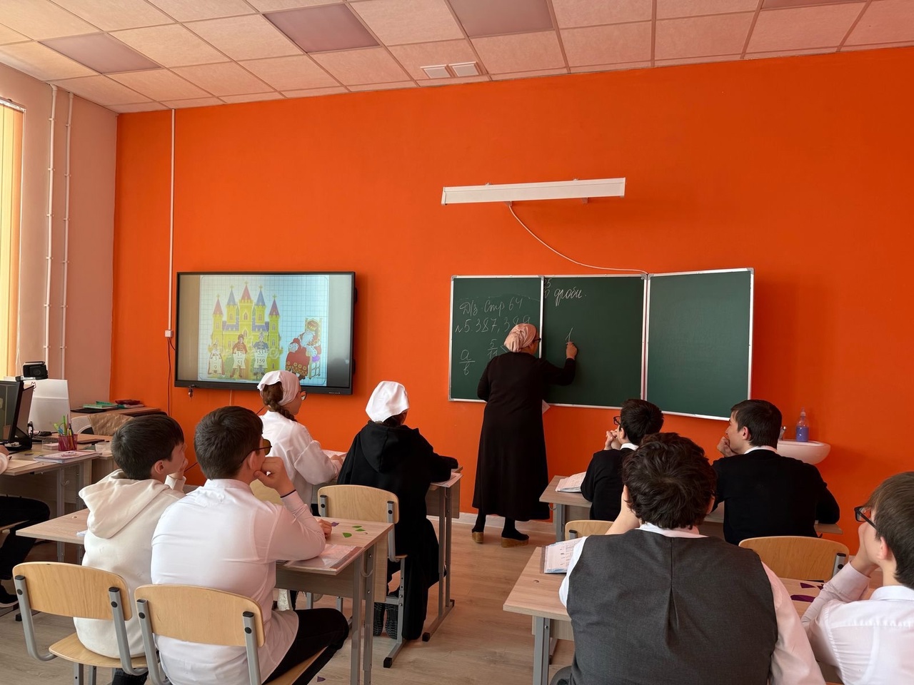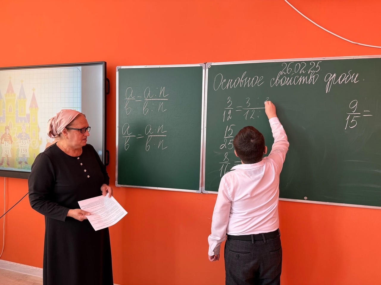 🧮26 февраля преподаватель математики Давлетмерзоева Зура Алаудиновна, провела открытый урок на тему «Основное свойство дроби» в 5-х классах.📝Цели урока:1. Ознакомить учеников с основным свойством дроби.2. Научить применять это свойство для упрощения дробей.3. Развивать логическое мышление и навыки работы в группе.📗Оценка урока:• Учащиеся активно участвовали в обсуждении и работе в группах.• Большинство смогли правильно применить основное свойство дроби.• Урок прошёл в позитивной атмосфере, все ученики были вовлечены в процесс.📝Заключение:Урок был успешным, так как ученики не только узнали новое, но и смогли применить знания на практике. Основное свойство дроби стало понятным благодаря наглядным примерам и активному взаимодействию.