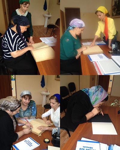 Преподаватели нашей школы на занятиях по изучению письма и чтения по системе Брайля. Занятия ведет замдиректора по коррекционной работе Хажиханова М.А.