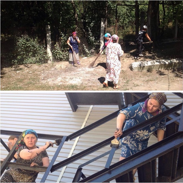 Последние штрихи на территории школы-интерната перед началом учебного года.